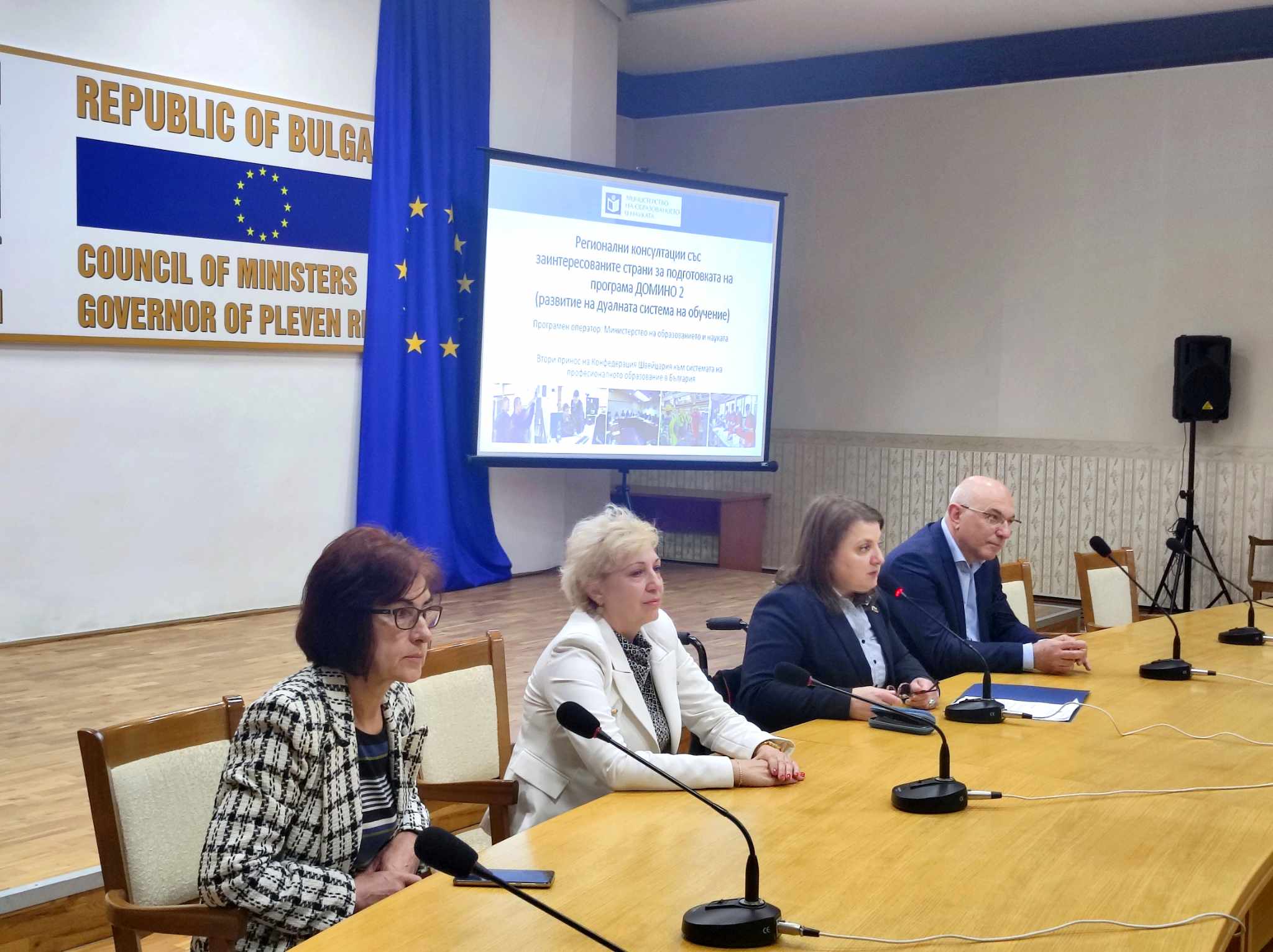 Областният управител Виолета Иеремиева беше домакин на Регионална консултация за подготовка на програма за дуално обучение „Домино 2”, разработена от Министерство на образованието и науката по швейцарско-българска програма за сътрудничество със срок на изпълнение 2024 – 2028 г. Иеремиева откри форума, изразявайки заинтересованост от дуалната форма на обучение, която познава детайлно. Васил Радойновски, ръководител на секретариата на Българо-швейцарската търговска камара, представи предходните програмни периоди и основните аспекти на „Домино 2”, която стартира през пролетта на 2024 г. и цели бизнесът да допринася активно в обучението и учебните планове.