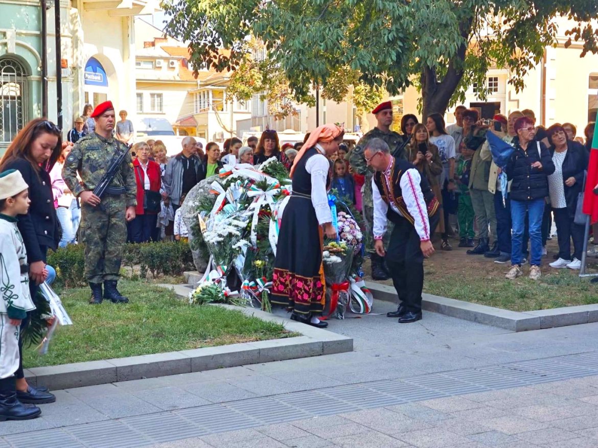 В знак на признателност бяха поднесени венци и цветя пред паметния знак, поставен пред театъра за 100-годишнината от Независимостта на България. Присъстващите сведоха глави и с едноминутно мълчание почетоха делото на радетелите за независима България, последвано от изпълнение на националния химн.
