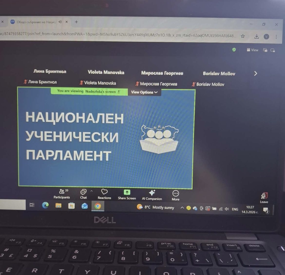 В среща на Националния ученически парламент се включиха представители на Ученическия съвет към гимназията – Виктория Цановска и Дария Лазарова. Заедно с ученици от различни градове те обсъдиха актуални въпроси за развитието на училищната общност, ролята на ученическите съвети и начините младите хора да бъдат по-активно ангажирани в училищния живот.