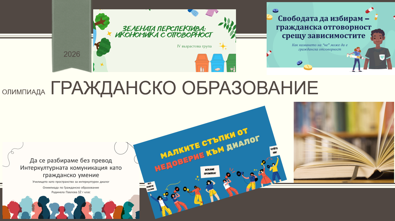 Ученици от 12 клас на ДФСГ „Интелект“ постигнаха отлични резултати на общинския кръг на Олимпиадата по гражданско образование, като се отличиха с добре подготвени и съдържателни проектни разработки.