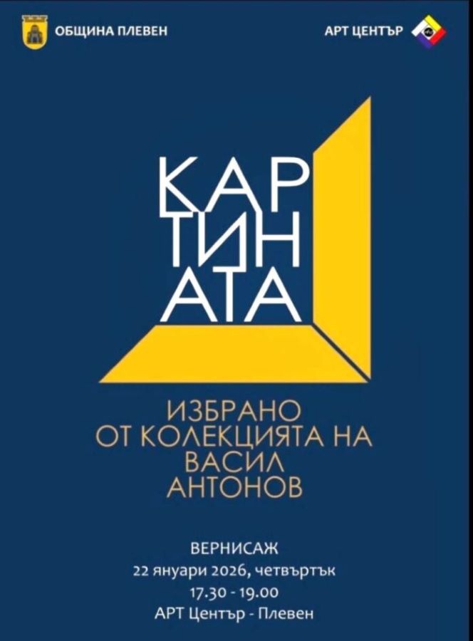 Изложба под надслов „Картината“ ще бъде представена в Плевен, предлагаща на ценителите 140 избрани произведения на изкуството от колекцията на плевенския бизнесмен и колекционер Васил Антонов. Откриването на експозицията ще се състои на 22 януари, четвъртък, от 17.30 ч. в Арт Център Плевен, разположен в Градската градина.