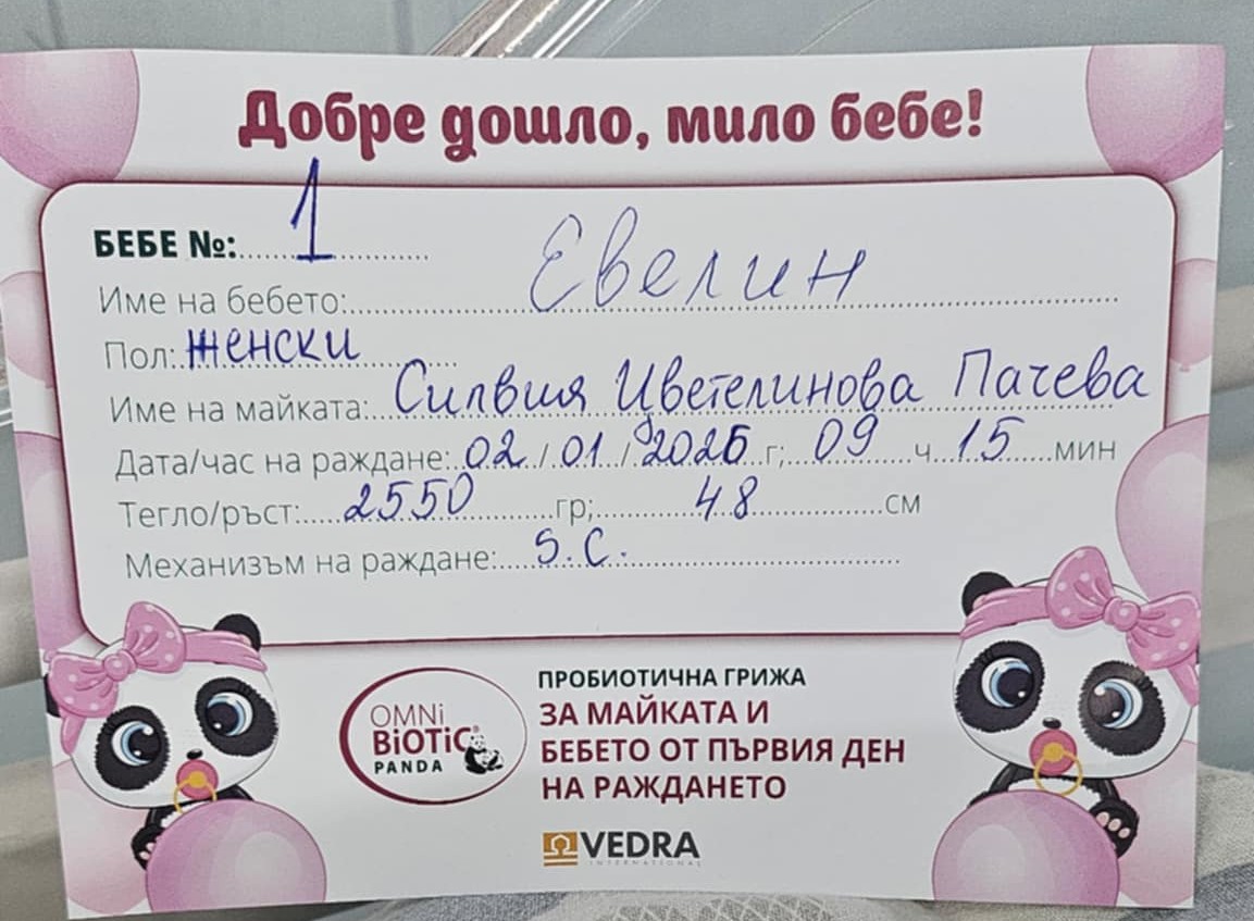 Евелин е първо дете за своята майка – 31-годишната Силвия Пачева от Плевен. Както майката, така и новороденото са в добро общо състояние и остават под наблюдението и грижите на медицинския екип на лечебното заведение.