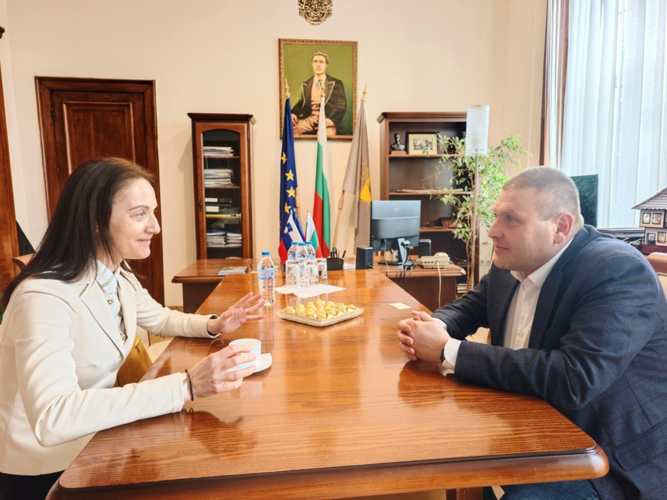 Среща между кмета на Плевен д-р Валентин Христов и посланика на Република Словения в България Н. Пр. Наташа Бергел се проведе в Община Плевен. В рамките на разговора бяха обсъдени работата по текущи и предстоящи инфраструктурни проекти, важни за града, както и развитието на добрите отношения между Плевен и Посолството на Словения у нас.