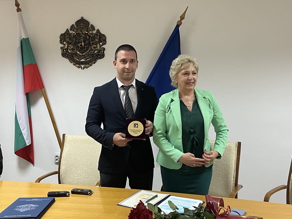 Началникът на Регионалното управление на образованието – Плевен Албена Тотева връчи почетен плакет на Областния управител на област Плевен Николай Абрашев в знак на благодарност за добрата съвместна работа и личен принос в редица инициативи, свързани с образователния процес. По повод честването на 24 май – Ден на Светите братя Кирил и Методий, на българската азбука, просвета и култура и на славянската книжовност, с отличие – грамота „Неофит Рилски”, бяха удостоени 8 педагогически специалисти от област Плевен.