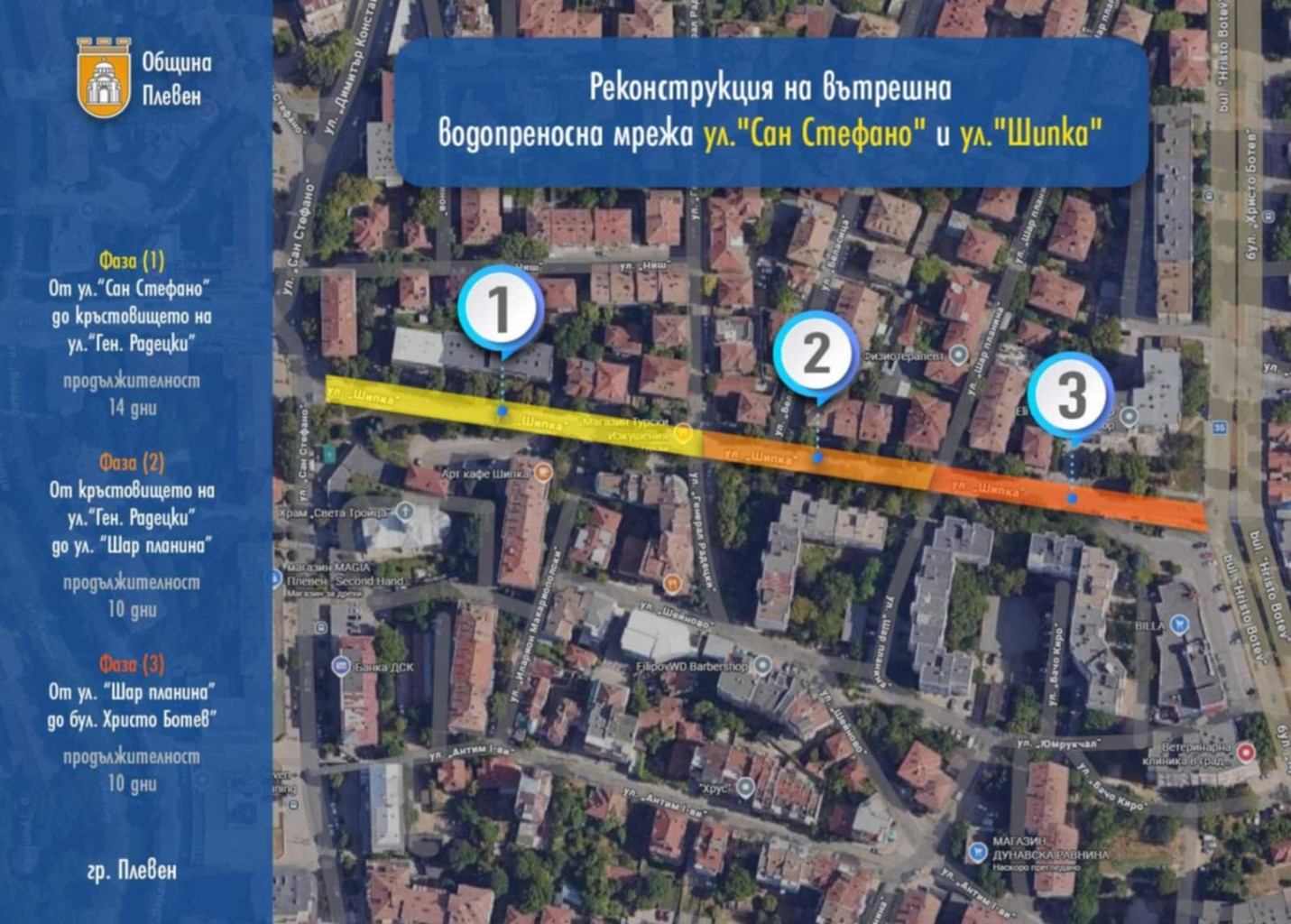 ### Първа фаза: ул. „Шипка“ – старт на 16 февруари