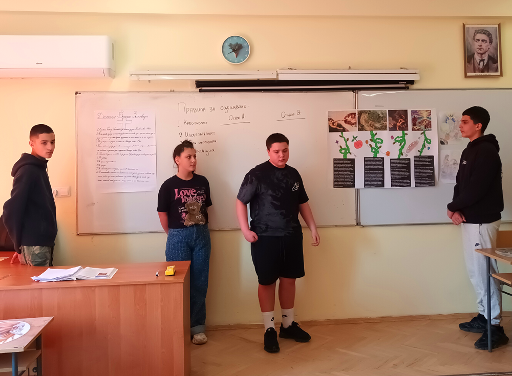 Днес в 8 „б“ клас се проведе открит урок по български език и литература под ръководството на учителя Мирослав Иванов. Темата на занятието беше „Библейските ценности и тяхното актуално звучене в нашето съвременно общество“.