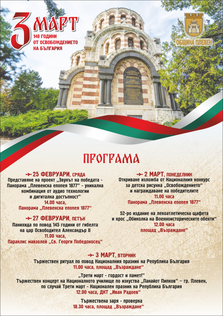 Плевен ще отбележи тържествено 148-ата годишнина от Освобождението на България с поредица от инициативи, които започват още седмица по-рано и включват представяне на проект, изложба, спортни състезания, официални ритуали и заря-проверка.