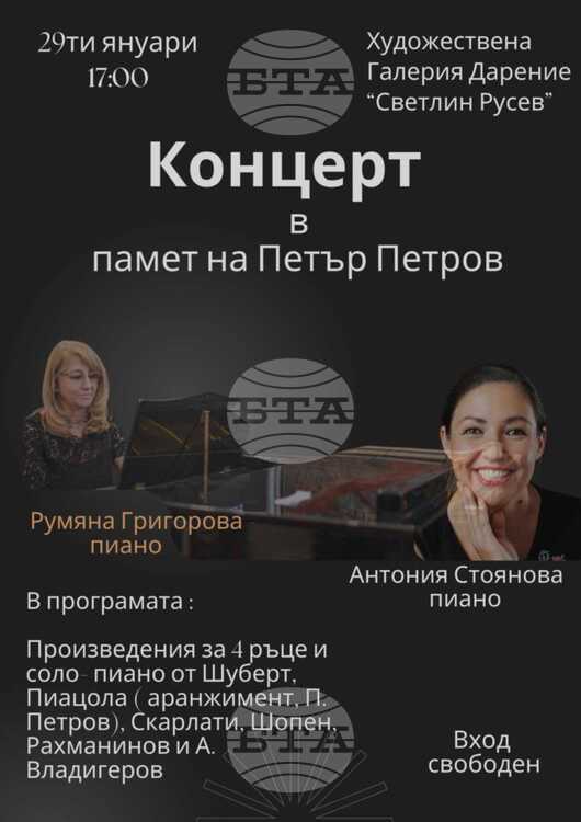Плевен почита паметта на композитора Петър Петров с безплатен концерт в художествената галерия Дарение „Колекция Светлин Русев“ на 29 януари