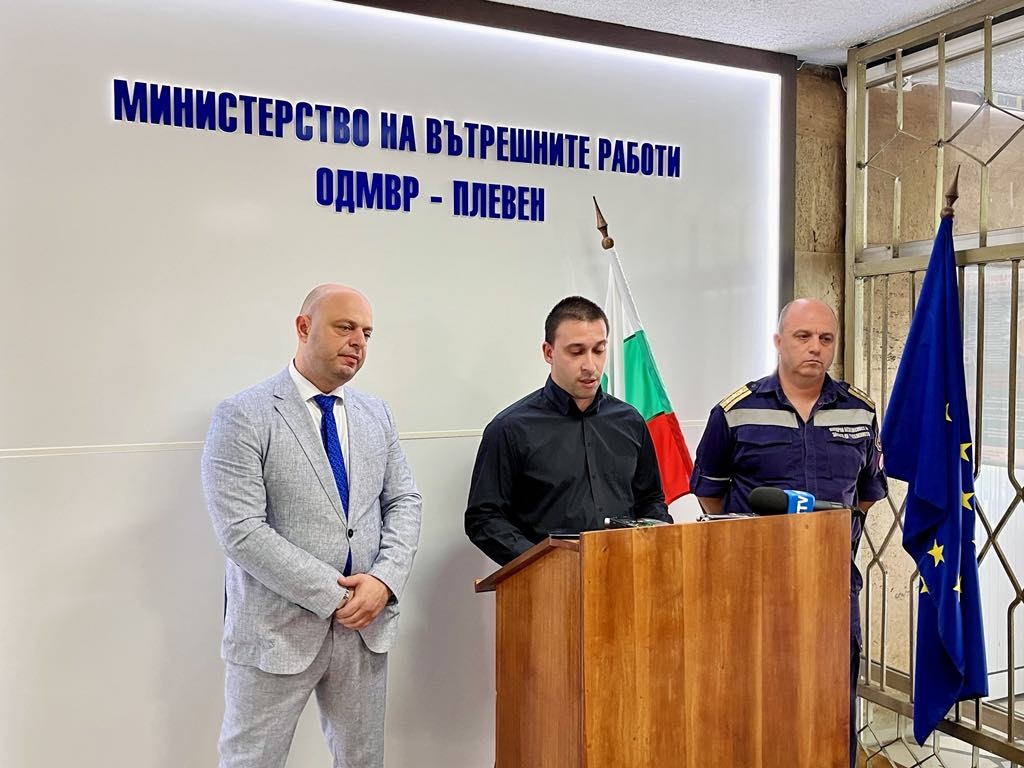 Николай Абрашев, областен управител на област Плевен, директорът на РДПБЗН – Плевен комисар Станислав Атанасов и директорът на ОДМВР – Плевен старши комисар Живко Ламбов съобщиха за предприетите мерки за нормализиране на ситуацията в областта.