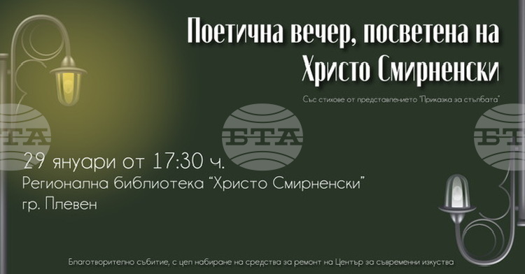 На 29 януари Регионалната библиотека „Христо Смирненски“ в Плевен е подготвила специална поетична вечер в чест на своя патрон. Елвира Цветанова, специалист „Връзки с обществеността“ към библиотеката, сподели, че програмата включва съвременна сценична интерпретация на поезията на Смирненски, вдъхновена от неговата „Приказка за стълбата“. Това културно събитие е част от поредица благотворителни инициативи, които стартират в началото на 2026 година, подготвени от театралната формация „Нюанси“.