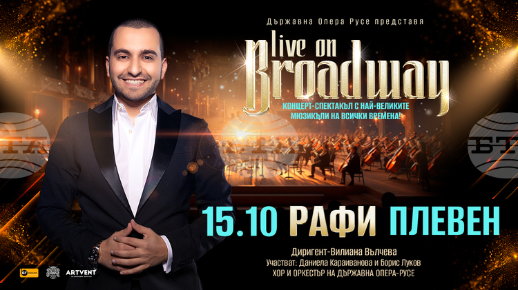 Спектакълът-концерт Live on Broadway, представен от Русенската опера и Рафи Бохосян, ще бъде изпълнен в Плевен на 15 октомври на сцената на читалище „Съгласие 1869“, информираха от организаторите на събитието.