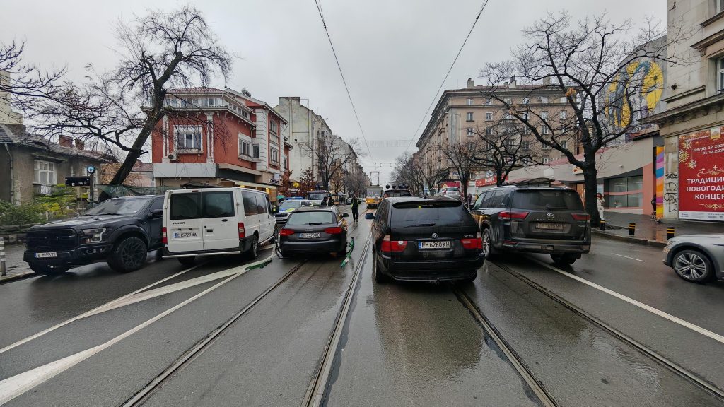 Автомобили с плевенски номера блокираха движението по булевард „Дондуков“ близо до сградата на Народното събрание в столицата.