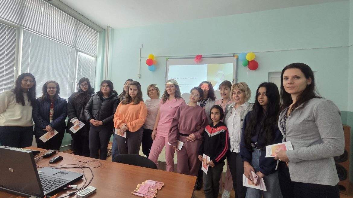 Първата среща в рамките на кампанията се проведе в СУ „Анастасия Димитрова“ в Плевен, където екипът разговаря с момичета от 6., 7., 8. и 9. клас. Пред учениците беше представена презентация с достъпна информация за видовете онкологични заболявания, ролята на профилактиката, разпространените митове в интернет и начините за намаляване на рисковите фактори. Част от програмата включваше и практическо обучение за самоизследване на гърдите.
