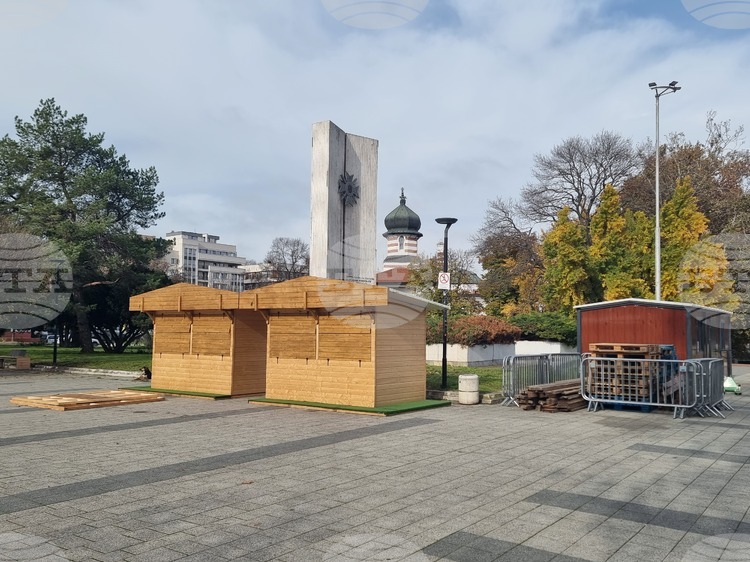 В Плевен започна изграждането на Коледно градче с 24 къщички и ледена пързалка, откриването ще е на 1 декември