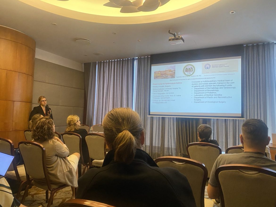 Сред участниците беше и проф. д-р Ивелина Йорданова от Клиниката по кожни и венерически заболявания към УМБАЛ „Д-р Георги Странски“ в Плевен. Тя представи българския опит в диагностиката и лечението на ВБЕ, както и дейността на ръководения от нея Експертен център за булозна епидермолиза. Центърът, официално признат от Министерството на здравеопазването на Република България през октомври 2024 г., е единственият по рода си в страната и обединява усилията на шест клинични звена, включващи различни области на медицината.